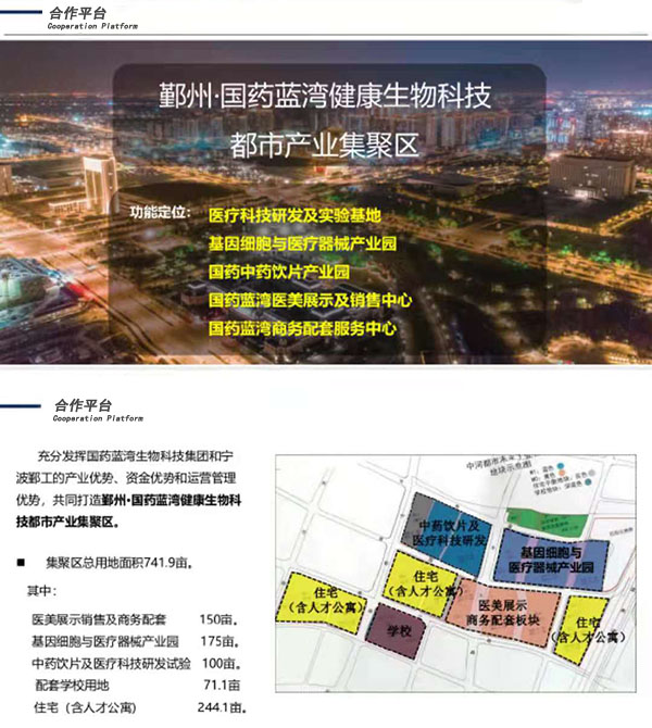 集团拟在宁波市投资建设鄞州·国药蓝湾健康生物科技都市产业集聚区