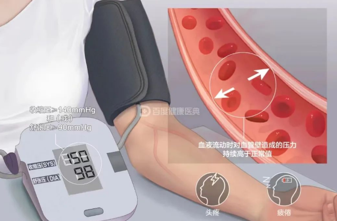 通俗来讲,高血压是因为血管壁增厚、管径减小、管腔狭窄、弹性降低等情况后,血液流通遇到阻力,血流速度逐渐减缓,正常的压力无法让血液顺利通过血管,这时候心脏为了把血液送达身体各部位,就会使出更大的力,由此导致血压上升。